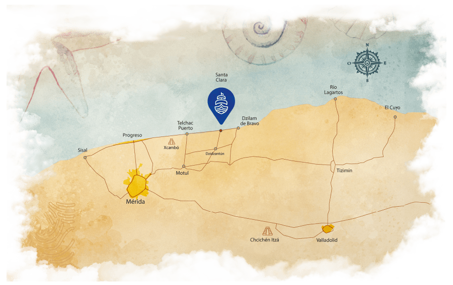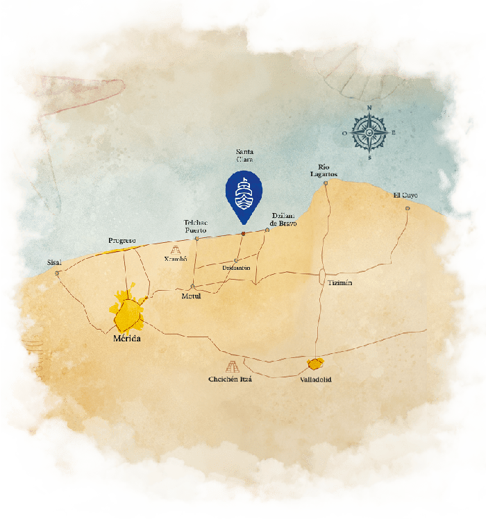 Mérida: 1 hora - Telchac Puerto: 30 min. - Dzilam de Bravo: 15 min.